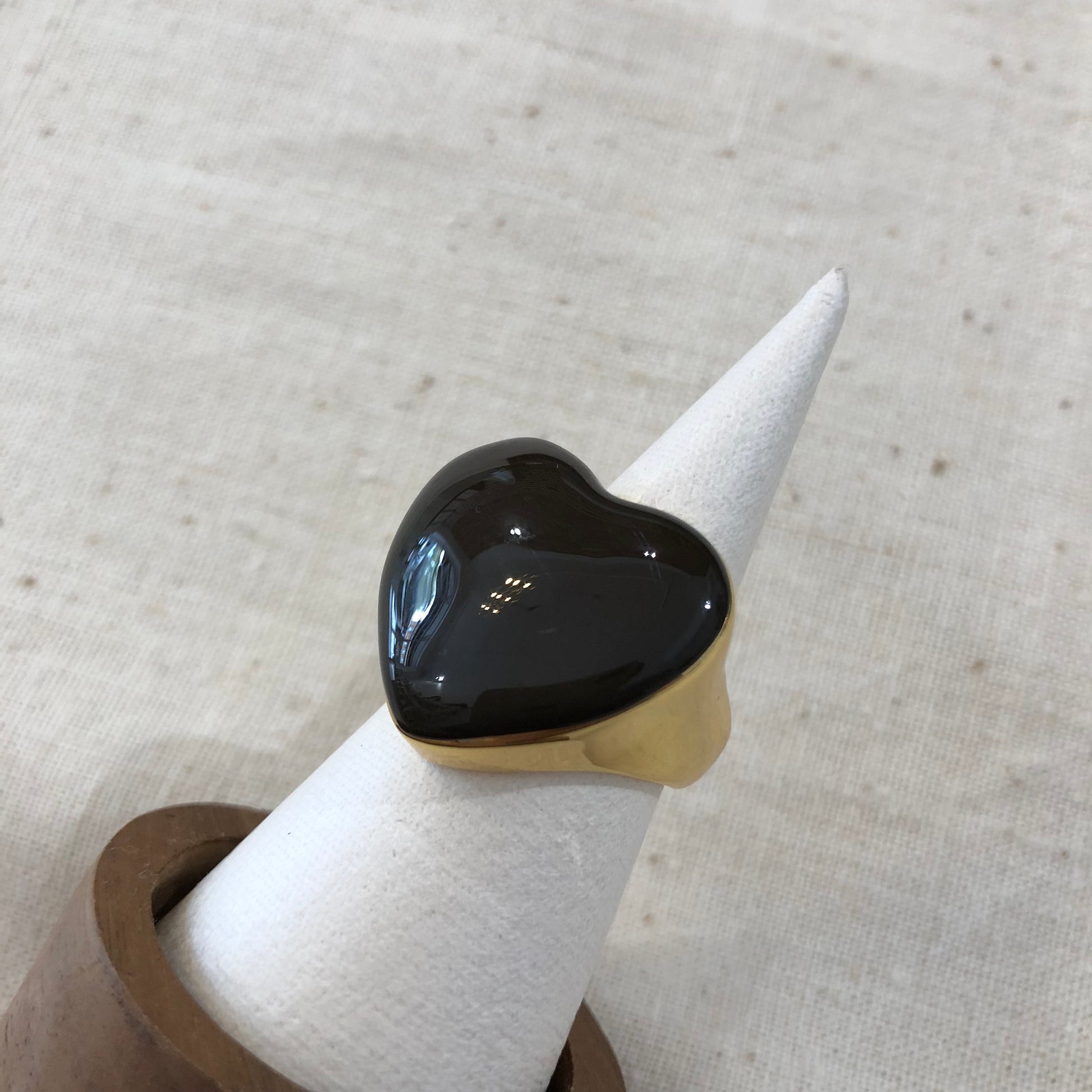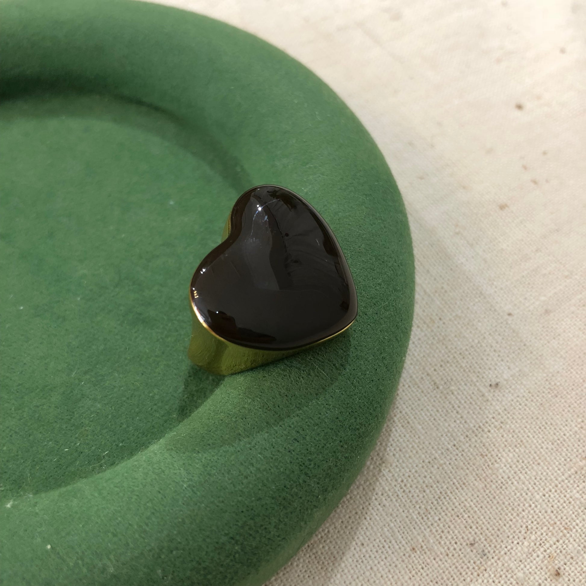 A bold statement piece featuring a sculpted heart centerpiece with a deep, glossy finish.